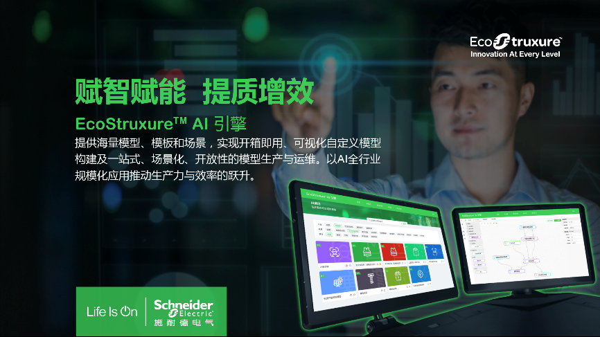 同时,施耐德电气还推出了企业级一站式、场景化、开放性的AI模型生产与运维平台EcoStruxure AI引擎,将能源管理和自动化领域的专业知识融入AI模型中,为业务专家、数据分析师等用户提供低代码乃至零代码的AI应用。